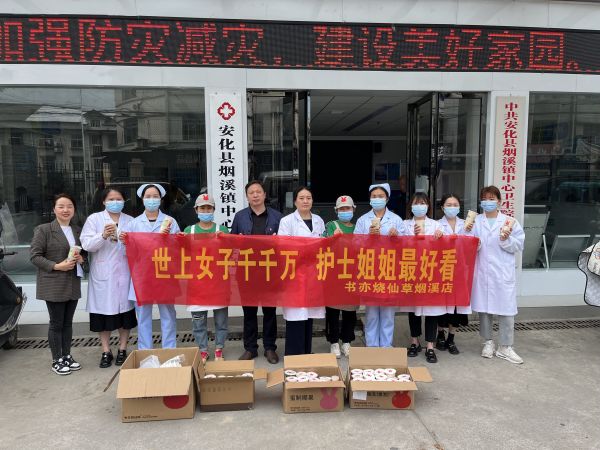 烟溪镇中心卫生院 5月12日上午,书亦烧仙草奶茶店为烟溪镇中心卫生院医务工作人员送去70杯爱心奶茶,“疫情期间,这些白衣天使都辛苦了,我们想趁着这个节日感谢一下她们”奶茶店负责人表示。