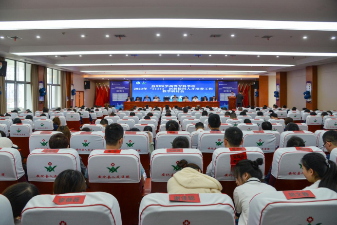 5月13日,益阳医学高等专科学校2023年“1+1+1”人才培养教学研讨会在安化县人民医院举行。省卫健委医政医管处处长陈鸿君、省教育厅职业教育与成人教育处副处长殷劭、益阳医专党委书记周奎、益阳医专校长周志宏、安化县人民政府副县长莫超出席,湘西北13家市县级医院相关负责人参会。