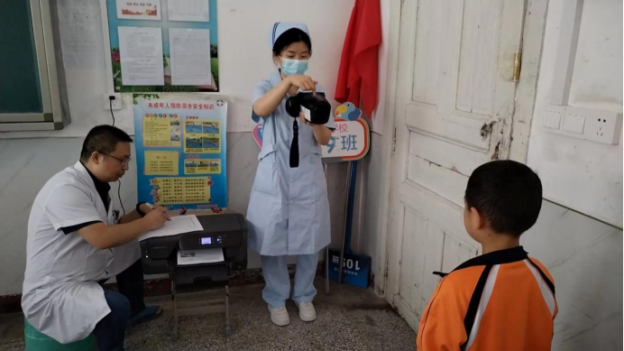 图为今年4月,县第二人民医院到梅城镇芙蓉学校进行《保护眼睛,从小做起》主题宣教。