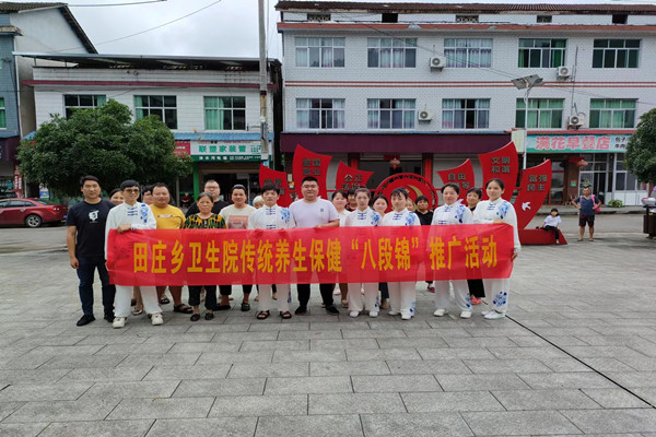 6月19日,田庄乡卫生院走进新联村社区,开展中医养生保健“八段锦”推广活动。 活动现场,医护人员一边讲授“八段锦”口诀,一边为老人们示范“八段锦”的基本动作要领,从动作步法到手形、手法,逐一进行分解教学,现场群众学习兴致高,学习氛围浓。“以前的健康讲座,都是在台上讲,我们在台下听。没读过什么书,年龄大了记性也不好,接受和理解力有限,很难学会。通过今天这种形式,我们大家能直接参与到活动中来,学起来容易多了。”一位蒋大爷向医务人员说道。群众纷纷为这种浅显易懂的学习方式点赞,并表示会长期坚持练习。