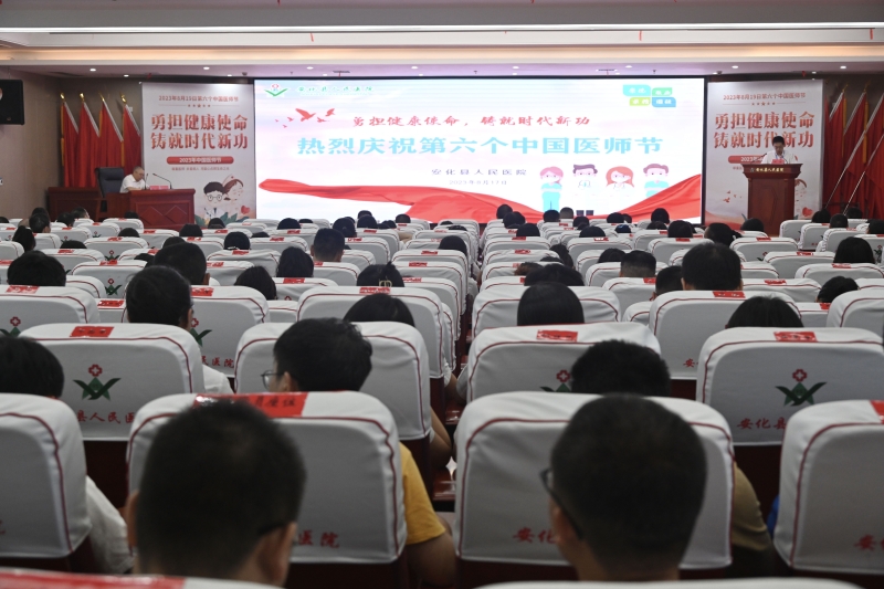 8月17日,县人民医院第六个“中国医师节”表彰大会在行政楼五楼多功能会议厅举行。会议由党委委员、副院长胡青主持,在家院领导、各科室正副主任、正副护士长及临床非值班医务人员参加活动。 会议上,医院党委副书记、院长谌勇致辞,他向常年奋战在临床一线的全体医师们致以诚挚的问候和节日的祝福。会上表彰了神经内科等5个医疗管理先进科室,李乐生等6名优秀医疗管理者和周伶俐等40名优秀医生。重症医学科主任李乐生和肾内科主任肖碧峰分别作为优秀管理者、优秀医生代表发言。 医院党委书记周勤表示,在新形势及新使命下,医者们的担子将变得更重,希望全院医务人员不忘医者初心,勇担时代使命,不断拓展知识广度,提升职业技能,树牢廉洁自律意识,弘扬“敬佑生命、救死扶伤、甘于奉献、大爱无疆”的精神,共同书写医院高质量发展新篇章。