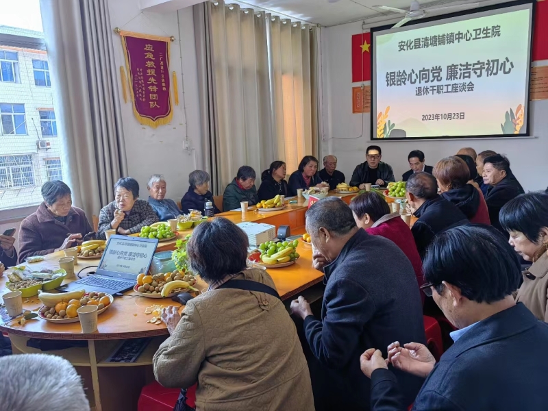 为弘扬中华民族爱老、敬老的传统美德,在重阳节和全国第十一个“老年节”到来之际,卫健系统各单位开展多形式敬老爱老活动。 奎溪镇卫生院邀请所有退休职工到院参加“暖情金秋 爱在重阳”主题座谈会,并为他们进行了免费体检。 清塘铺镇中心卫生院举行“银龄心向党 廉洁守初心”退休职工座谈会。医院院委班子成员、工会成员及退休老同志共50余人欢聚一堂,共庆重阳佳节。 长塘镇卫生院组织退休干职工召开了“九九重阳节,浓浓敬老情”座谈会,共26人参加会议。 柘溪镇卫生院举办了2023年重阳节退休职工座谈会,柘溪镇人民政府党委委员、副镇长刘志刚及医院院班子成员参加。大家欢聚一堂,共谋医院发展,欢度重阳佳节。 马路镇中心卫生院举办了“共度重阳节,共谋新发展”座谈会。院班子成员、工会委员、科室代表和退休职工共50余人参加。 小淹镇中心卫生院组织退休职工前往百花寨开展重阳节一日游活动。共赏美景,共话家常。 仙溪镇中心卫生院组织开展“爱心义诊进乡村 敬老爱老庆重阳”下乡义诊活动。