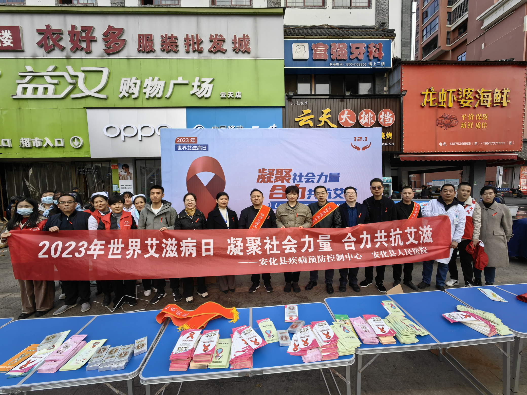 12月1日,安化县集中开展以“凝聚社会力量,合力共抗艾滋”为主题的第36个艾滋病日宣传活动。 安化县人民政府召开了2023年县防艾委成员单位联席会议。会上,县卫健局党组成员、副局长,县疾控局局长梁俊英报告了我县艾滋病防治工作开展情况,县人民政府党组成员、副县长莫超强调,各部门要进一步提高政治站位,强化责任,对标对表,强化合力,共抗艾滋。 会后,县疾控中心组织志愿者在云天商业广场集中开展艾滋病防治宣传活动。成员单位相关负责人到活动现场进行了健康宣教,并前往县人民医院爱心楼看望慰问了艾滋病患者和医务人员,鼓励患者乐观向上、积极治疗;希望一线医务人员给予患者更多的关怀和鼓励,同时更要时刻注意保护自身安全。 同时,田庄乡卫生院在田庄中学同步开展青少年艾滋病防治宣传教育专题课。该院医务人员结合工作经验,通过知识讲授、案例分析等形式,对艾滋病的起源、传播途径、治疗方法和预防措施等方面进行深入浅出地讲解,告诉学生们要养成良好的习惯,在生活中重视细节,尽一切可能抵制艾滋病的侵袭。