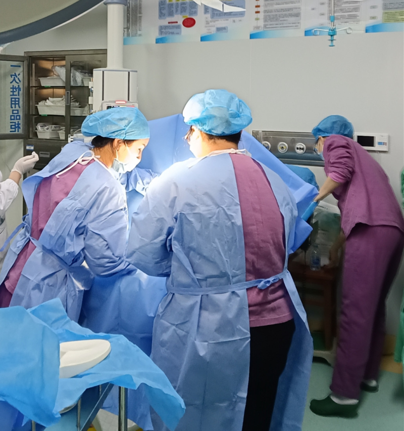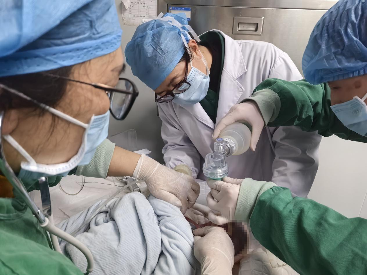 2月5日,安化县第二人民医院妇产科收治一名孕33周2天早产临产孕妇,妇产科、儿科和麻醉科联合助其顺利分娩,母女平安。 凌晨5点多,妇产科寂静的走廊响起急促的脚步声,孕妇刘某在家人的搀扶下快速走入医生办公室,安化县第二人民医院妇产科副主任医师在接诊后,详细询问产妇病史,并进行体格检查,诊断刘某孕33周2天早产临产,出现胎膜早破,子痫前期。入院后,孕妇腹痛加重,宫口已开,早产不可避免。考虑雨雪冰冻天气的道路情况以及在转诊上级医院的过程中随时出现分娩的可能性,该院业务副院长在了解相关情况后,立即组织产科、儿科、医务科、妇幼健康科、麻醉科等科室进行会诊,根据孕妇情况,制定治疗方案,并启动了孕产妇救治绿色通道,全力确保孕产妇及新生儿的生命安全。 图为妇产科医生在为孕妇接生 图为儿科医生在给婴儿进行治疗 在多科室紧急联动下,13时01分,刘某顺利自然分娩一女婴。女婴立即转入新生儿科完善相关检查,经诊断患儿存在新生儿急性呼吸窘迫综合征,在进行相关药物治疗后,患儿病情逐渐稳定,目前继续在新生儿科予以呼吸机辅助呼吸、抗感染、保温、营养等支持治疗。