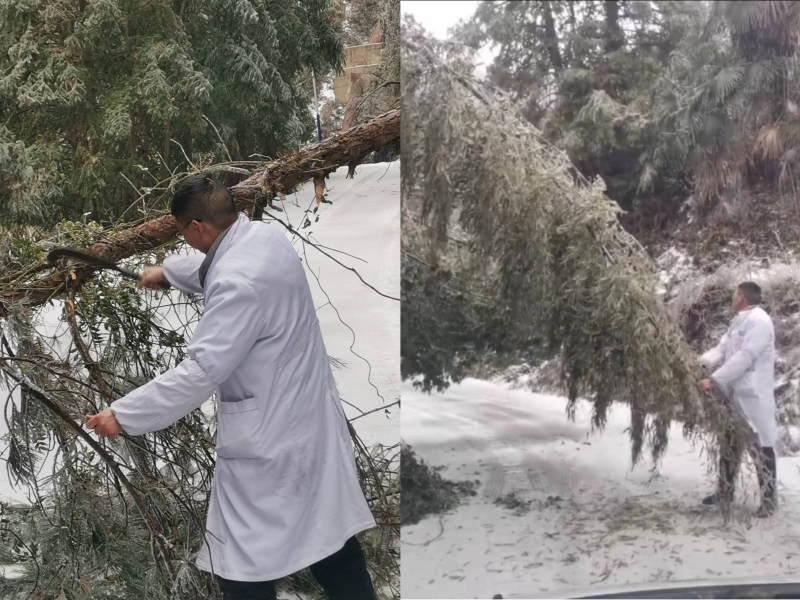 2月6日上午,县紧急医疗救援指挥中心接到120报警电话。清塘铺镇雨塘村一名三胎孕妇临近预产期,急需到县第二人民医院待产,指挥中心在了解具体情况后,迅速协调清塘铺镇中心卫生院急救人员赶赴孕妇家中,该院急救人员克服沿途风雪、道路冰雪覆盖、树木倒伏拦路等多重困难,在耗时近6小时后,顺利将孕妇护送至县第二人民医院待产,6日20时25分,该孕妇在县第二人民医院顺利诞下一名男婴。此次成功转运仅是我县卫健系统全力做好极端天气院前急救工作的一个缩影。 清塘铺镇中心卫生院:医务人员清理“折腰”拦路的树枝 为有效应对近期低温雨雪冰冻天气对院前急救工作带来的影响。我局迅速响应县低温雨雪冰冻灾害应急指挥部的相关工作要求,立即调度县紧急医疗救援指挥中心做好准备工作,提前为全县“120”车辆配备防滑链,做好车辆保养,确保车辆状态良好,配齐配全急救药品,全天候待命。同时,要求调度中心两个调度席位保持24小时在岗,并根据实际情况随时调整和增加调度席位,有效确保全县院前医疗急救工作正常有序开展,满足群众紧急就医需求。 人民医院:绿衣守护,搀扶病人上车 田庄乡卫生院:踏雪夜行,做人民健康卫士 自2月1日以来,县紧急医疗救援指挥中心共接听电话1458个,有效出车206趟,救治病人216人,其中,夜间出车45趟次,救治伤员50人。