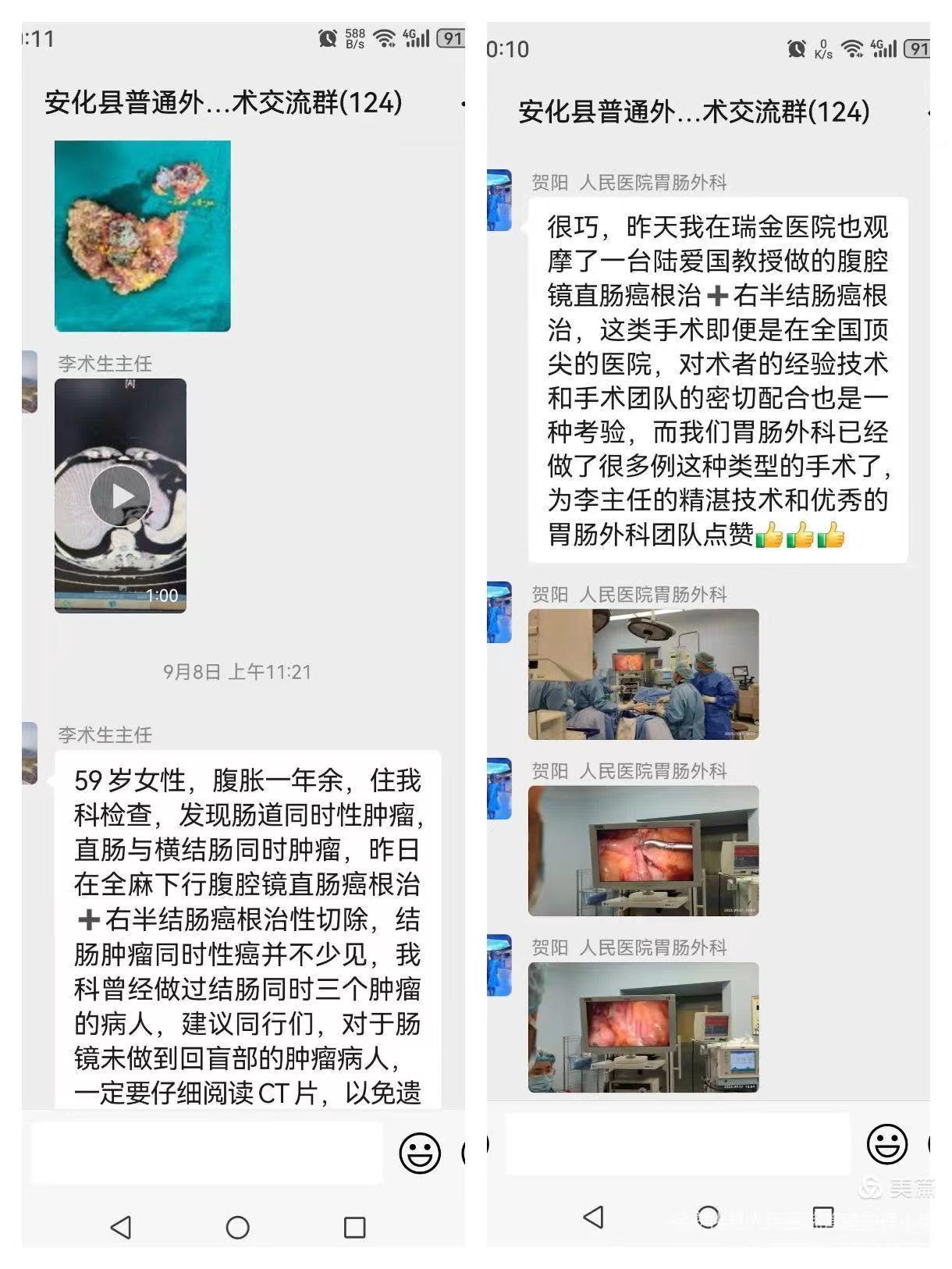 近日,县人民医院胃肠外科又一次成功开展肠道多肿瘤手术。针对患者及家属最关注的术后预期效果、术中风险以及大约费用等问题,胃肠外科主任李术生与其进行了详细沟通,并告知“肠道癌是一种高发性疾病,但其恶性程度以及对寿命的影响相较对较低,及早地治疗对患者后期的寿命以及生活质量有明显的改善,虽说存在手术难度及手术风险,但对于患者病情具有较大的意义,而在家门口进行手术治疗,手术费用、报销比例、家属陪护均有更大的优势,并且在县级医院享受省级医院的技术及病情管理,在手术安全上也能得到保障”患者及家属了解该情况后更加坚定了在县医院手术和治疗的信念。 9月7日对于胃肠外科来说是普通的一天,医护人员有条不紊地完成各类手术、治疗、护理,但又是不同往常的一天,因为在该科有一例即将实施的直肠癌根治+右半结肠癌根治性切除术,非常的巧合的与该科贺阳医生在进修的上海瑞金医院同一日进行肠道多肿瘤手术。贺阳医生在微信群说:这类手术即便是在全国顶尖的医院,对术者的经验技术和手术团队的密切配合也是一种考验,而该科已经做了多例这种类型的手术了。 科普:大肠癌是我国第二大高发癌症,结直肠癌从癌前病变进展到癌一般需要5-10年,为疾病早期诊断和干预提供了重要的时间窗口,建议在做好预防的同时,45岁以上人群至少做一次肠镜,高危人群应提早筛查。一般人群每年进行一次大便潜血试验,每5年进行一次乙状结肠镜检,每10年进行一次纤维结肠镜检。关注大肠癌相关疾病:警惕家族性腺瘤性息肉病及遗传性非息肉病性结直肠癌,对结直肠的各种慢性炎症及癌前病变(如结直肠息肉、腺瘤、溃疡性结肠炎、克罗恩病等)做好积极预防和治疗。