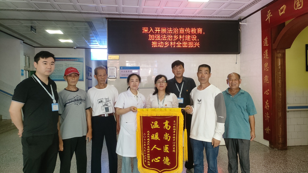 6月16日上午,平口镇中心卫生院发生了温馨感人的一幕,平口镇平山村村民成其文等4位老人家将一面印有“高尚医德,温暖人心”的锦旗送到了医院,以此表达对该院全体医务人员的感激之情。 原来,今年以来,4位老人家多次在平口镇中心卫生院门诊治疗和住院。无论是门诊就医还是住院治疗,医务人员都给予了他们无微不至的关怀。从细致入微的病情询问到精心制定治疗方案,每一个环节都展现出高度的责任心,临床医生时刻关注着他们的病情变化,根据实际情况及时调整治疗策略,用精湛的医术为他们的康复保驾护航。护理团队更是用心呵护,耐心地讲解注意事项,给予他们身体上的照顾和心理上的安慰,让他们在病痛中感受到了温暖与关爱。 该院负责人表示,这面锦旗不仅是他们对医院的认可与赞扬,更是激励全体医务人员继续努力前行的动力。该院将始终坚持党建引领,秉持“以患者为中心”的服务理念,不断加强医德医风建设,提升医疗技术水平和服务质量,努力让每一位患者都能在这里得到最好的救治,努力增强人民群众满意度和幸福感。