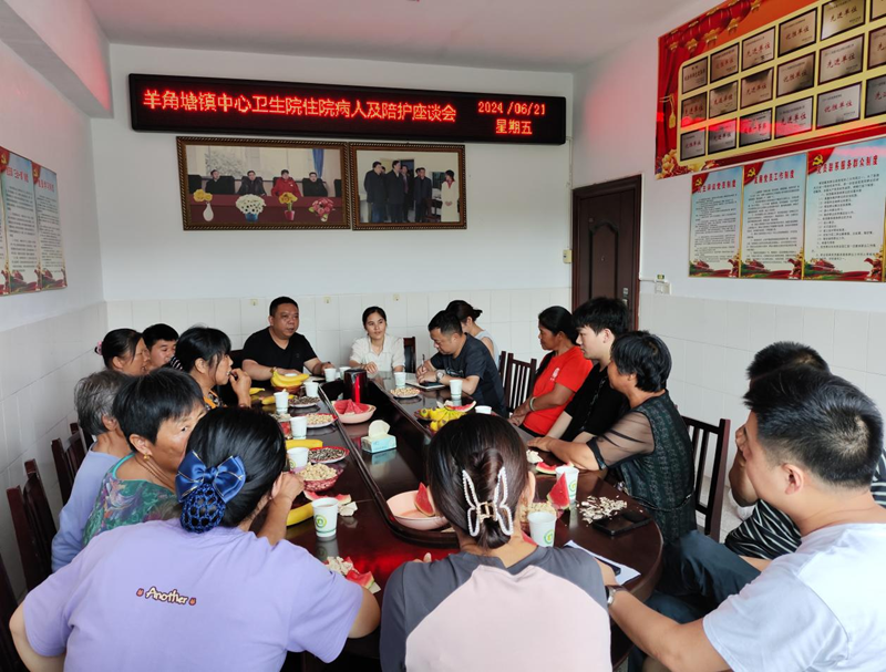 为加强医患沟通,及时听取患者和家属的意见建议,不断提升患者满意度与医院医疗护理服务质量。6月21日,羊角塘镇中心卫生院组织部分医护人员、患者及家属代表在五楼小会议室召开住院病人陪护座谈会。 该院负责人对患者及家属们的参加表示感谢,向他们介绍了本次座谈会的主要目的,希望患者及家属就该院在群众看病就医、医患关系、诊疗技术、服务能力、就医感受等方面提出宝贵意见和建议。