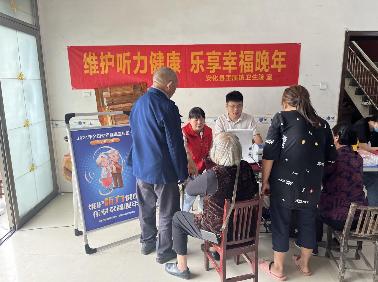 6月24日-30日为全国老年健康宣传周,为切实保障老年人健康,全县卫健系统扎实开展老年健康宣传周系列活动。 图为清塘铺镇中心卫生院老年人健康义诊现场 6月25日上午,清塘铺镇中心卫生院在沙坪村开展以“维护听力健康 乐享幸福晚年”为主题的老年健康义诊活动。义诊现场,医务人员为老年群体免费量血压、测血糖,做心电图检查、抽血化验等,向老年人普及听力健康知识,介绍耳疾病的预防干预以及日常生活中的注意事项,旨在提高老年人维护听力健康的意识和能力;据统计,此次活动中为大家发放老年人健康管理、高血压患者健康管理、糖尿病患者健康管理、中医药健康管理等国家基本公共卫生服务手册80余份,还对汛期防灾减灾知识进行宣传。 图为奎溪镇卫生院老年健康宣传活动现场 6月27日上午,奎溪镇卫生院医护人员到该镇木榴村开展以“维护听力健康,乐享幸福晚年”老年健康宣传周主题活动。活动中,医务人员为老年人免费量血压、测血糖,针对检测结果给他们提出了合理的保健建议,通过悬挂宣传横幅、张贴海报标语、发放宣传单等方式,宣传老年常见病、多发病和慢性病防治技巧,介绍听力健康知识、正确的干预措施及适宜老年人的耳朵养生保健知识,提醒老年人健康饮食、适量运动、定期体检,多参与社交活动、勤用脑,预防老年性痴呆。此次活动,共发放各类健康宣传单页60余份,为30余人提供健康咨询服务,收获老年群体的一致好评。