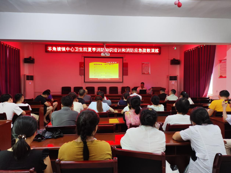 7月11日,羊角塘镇中心卫生院开展夏季消防知识培训与消防应急疏散演练,县消防大队教官刘剑应邀授课,全院干职工及部分患者参加演练。