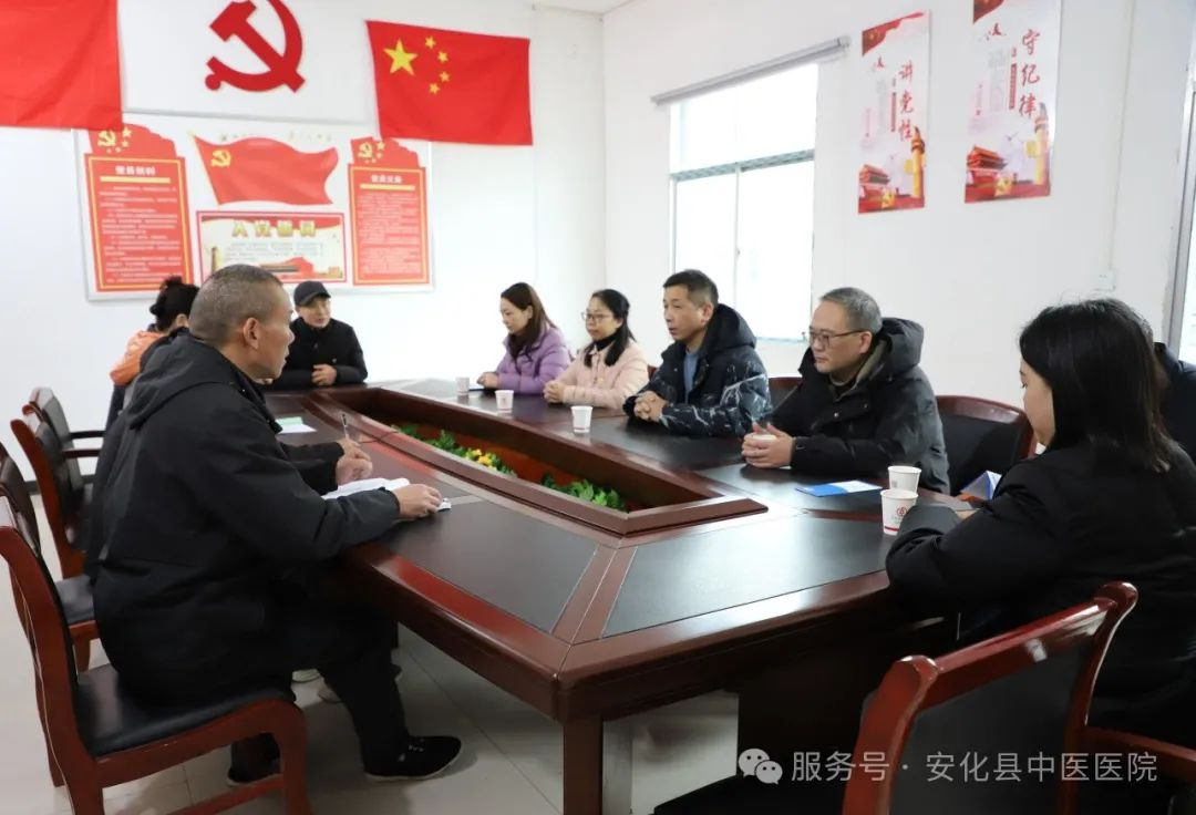座谈交流话振兴。会上,详细了解了2024年村集体经济发展、基础设施改善、脱贫户就业增收等工作开展情况,共同探讨下一步驻村帮扶工作事项,并强调县中医医院将与村支两委共同努力,携手同行,持续有力推动乡村振兴帮扶工作。同时询问了驻村工作队员的工作、生活和身体状况,并给予慰问。