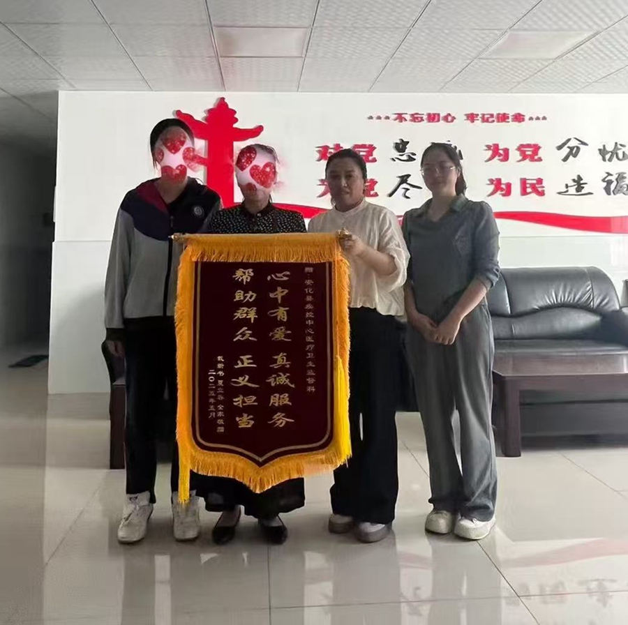 5月29日,市民夏女士(化名)将一面印有“心中有爱 真诚服务,帮助群众 正义担当”的锦旗,郑重交到安化县卫健局执法人员手中,感激之情溢于言表。 原来,今年4月7日,夏女士带女儿在医院就诊时,遭遇“医托”设局,被诱导至一家无证黑诊所接受所谓“分疗程治疗”,花费4000余元后,女儿病情不仅没有好转,反而加重。焦急万分的夏女士随即向卫健部门投诉。 接报后,县卫健局迅速行动。5月28日清晨,执法人员在目标诊所周边布控,趁其开门接诊时突击检查。经查,该诊所不仅环境脏乱、收费混乱,还暗藏一间设施简陋、无任何资质的“黑诊室”,正对患者进行非法诊疗。执法人员当场固定证据,并联合医院调取视频监控,锁定“医托”犯罪事实。 面对铁证,执法人员当场责令该诊所负责人立即退还夏女士被欺诈的四千余元费用。同时现场核实正在就诊的患者也疑似遭遇相同手法,当场责令其将刚收取的三千余元药费全额退还。短短一小时内,总计七千余元的群众“救命钱”“血汗钱”被成功追回,交还到受害群众手中。 “这面锦旗,是肯定,更是责任!广大市民要引以为鉴,就医务必选择正规医疗机构,切勿轻信‘医托’的花言巧语与所谓的‘特效’承诺。凡在医院内遭遇陌生人‘热心推荐神医’‘保证根治’并引导至院外就诊者,务必提高警惕,请立即拨打监督举报热线。”县疾控中心主要负责人在接收锦旗时表示。