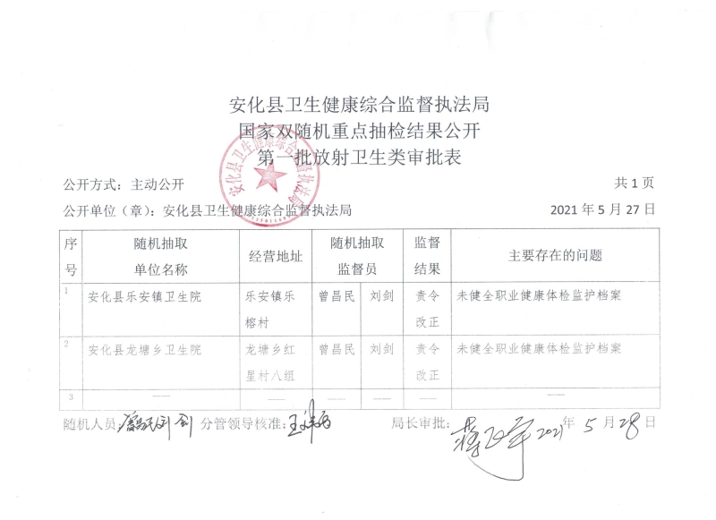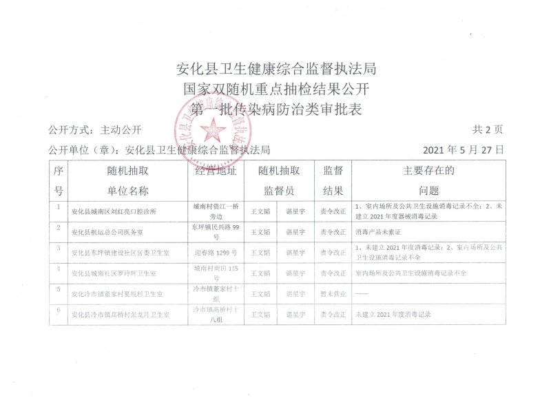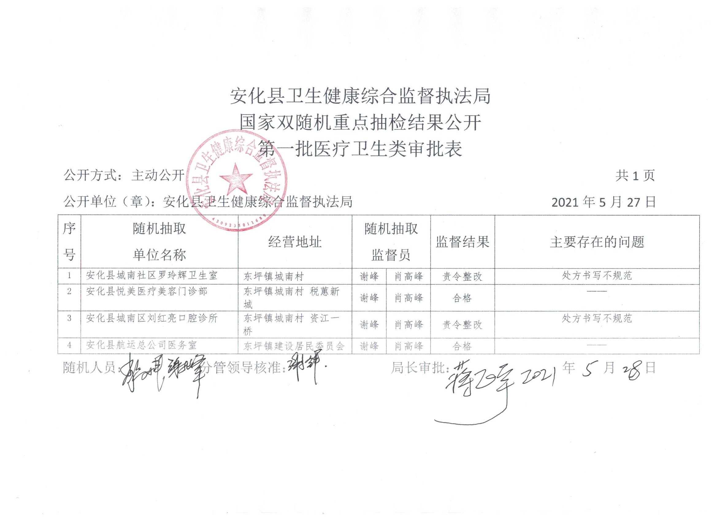 县卫健执法局关于国家双随机重点抽检结果的公示 (第一批)