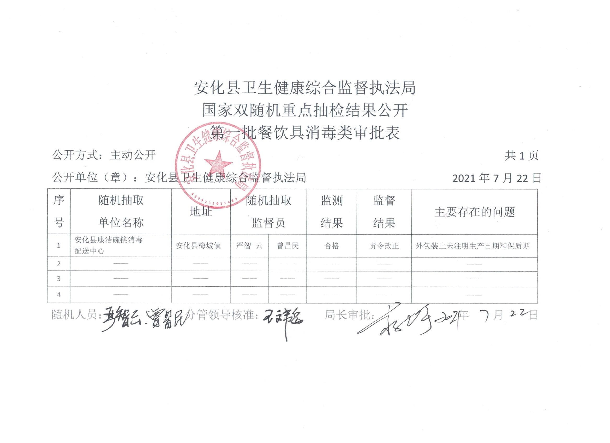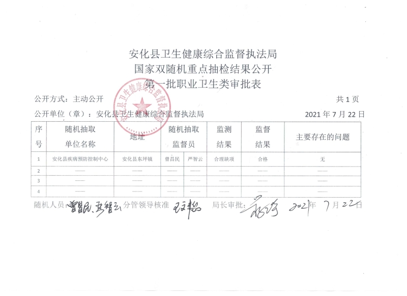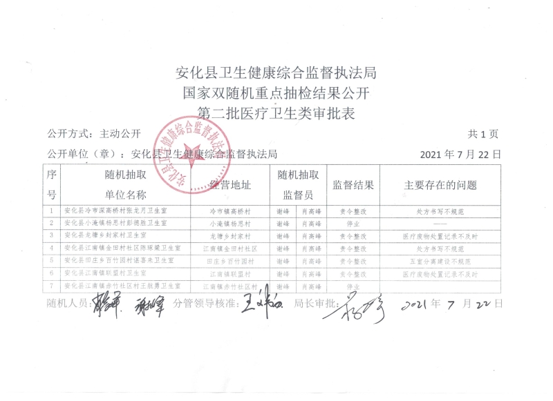 县卫健执法局关于国家双随机重点抽检结果的公示 (第二批)