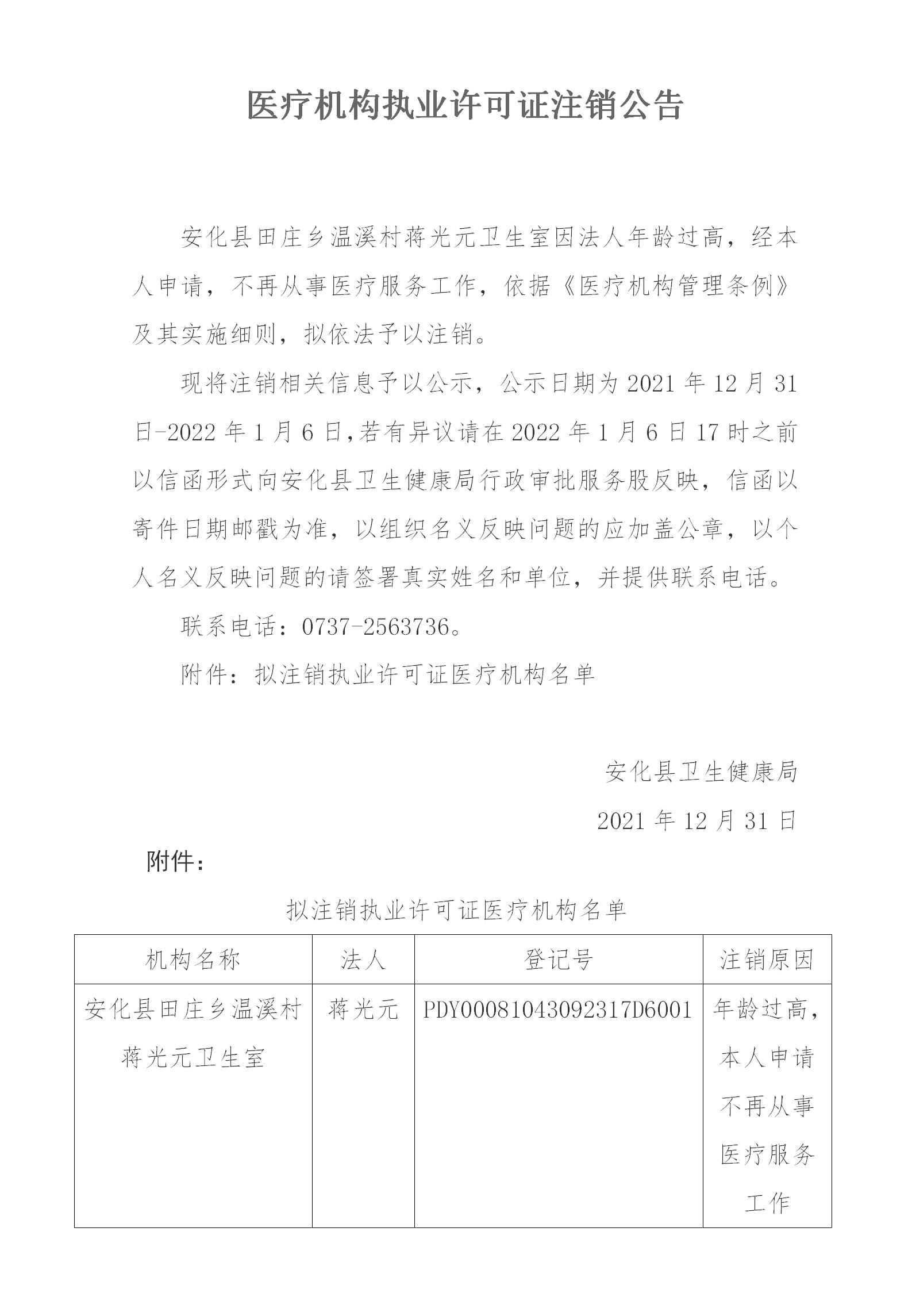 医疗机构执业许可证注销公告
