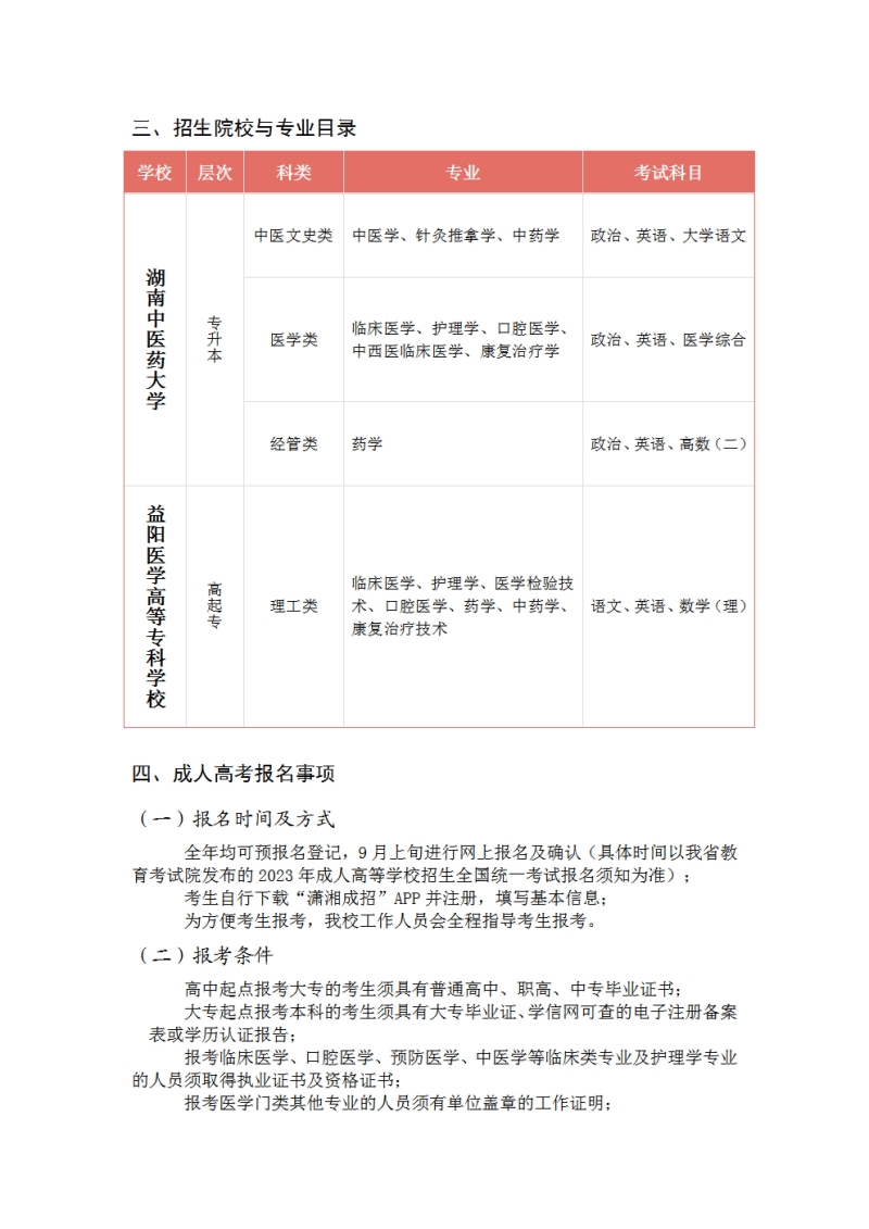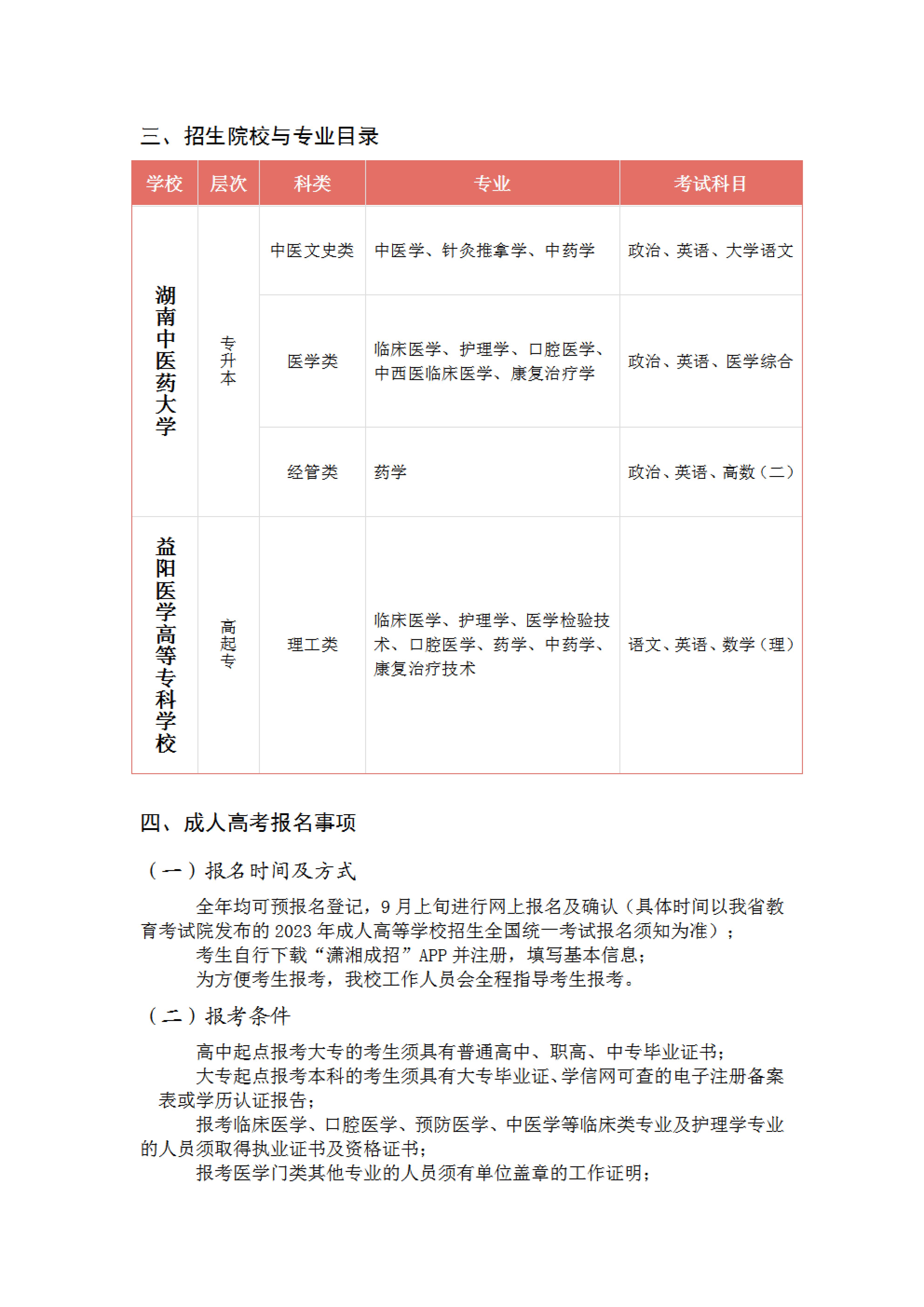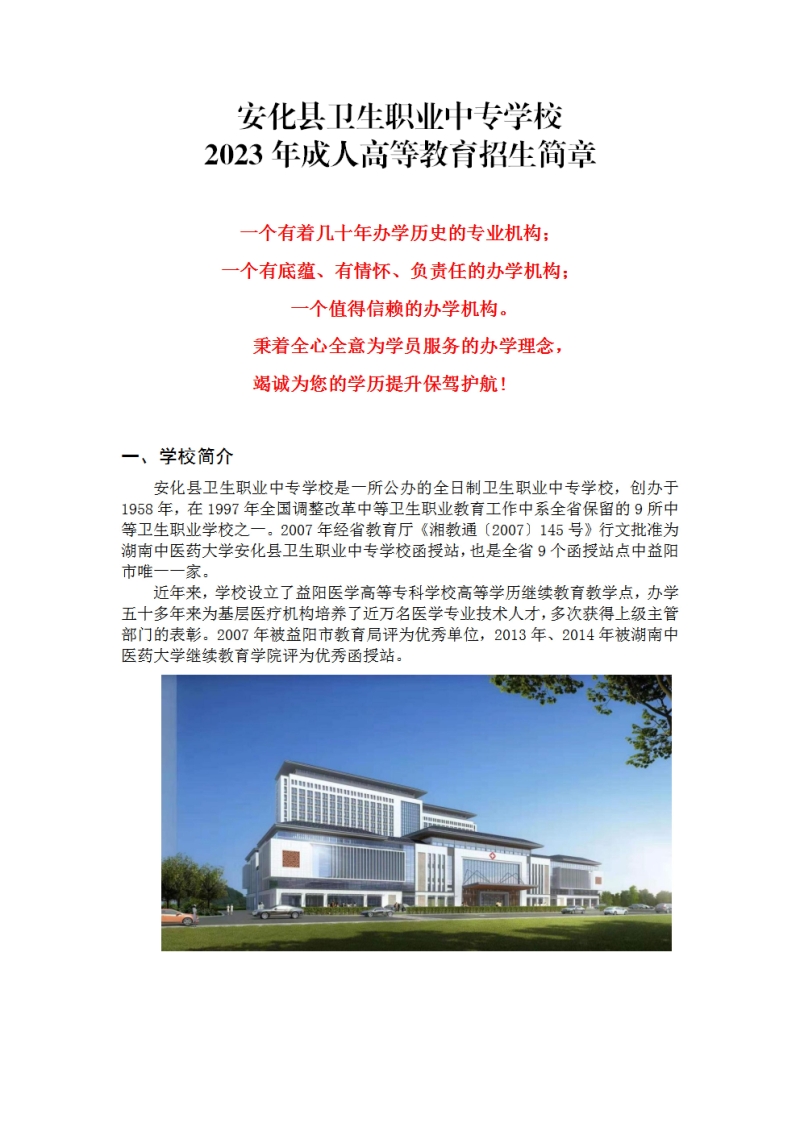 安化县卫生职业中专学校2023年成人高等教育招生简章