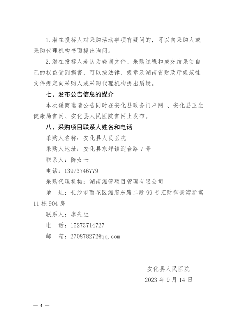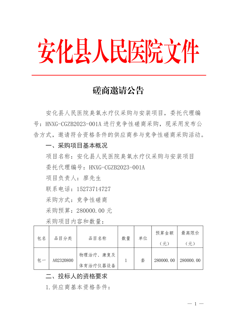 安化县人民医院臭氧水疗仪采购与安装项目磋商邀请公告