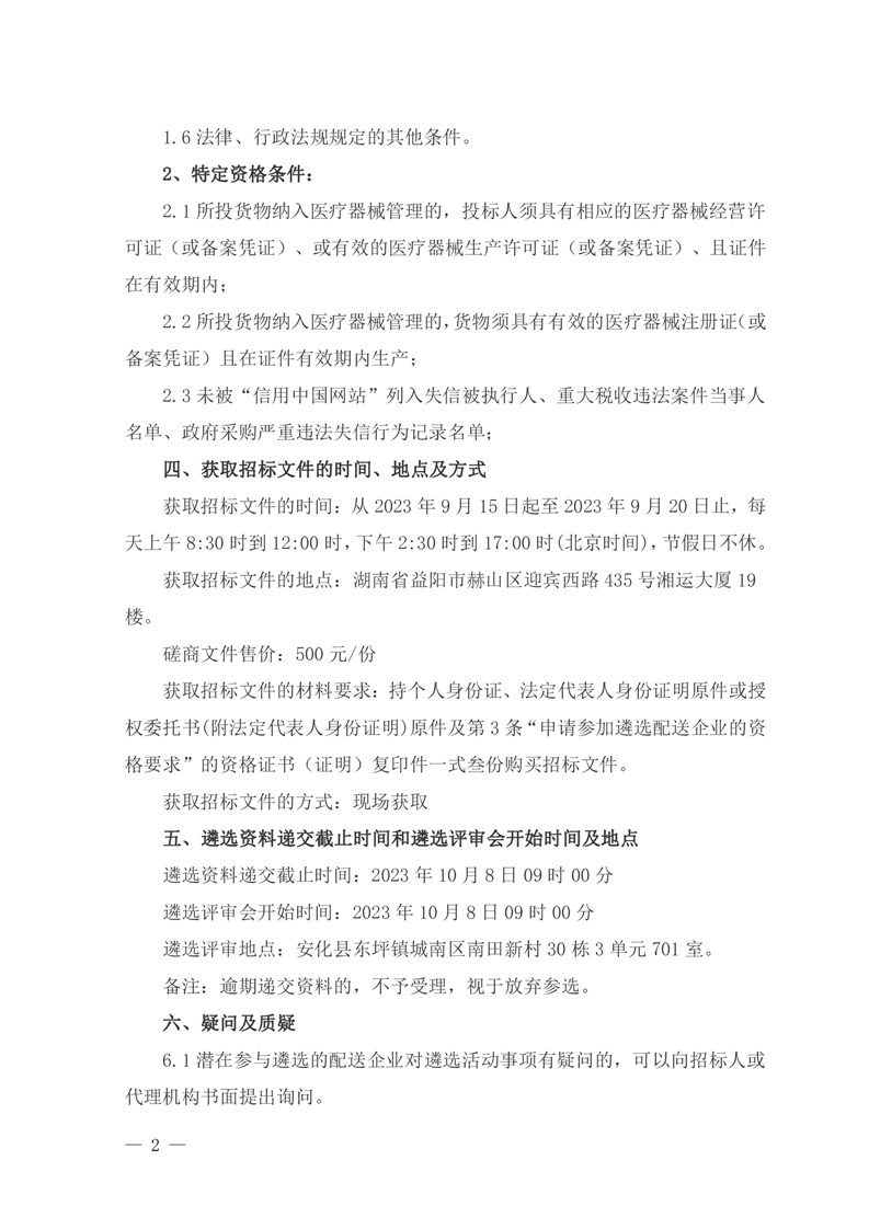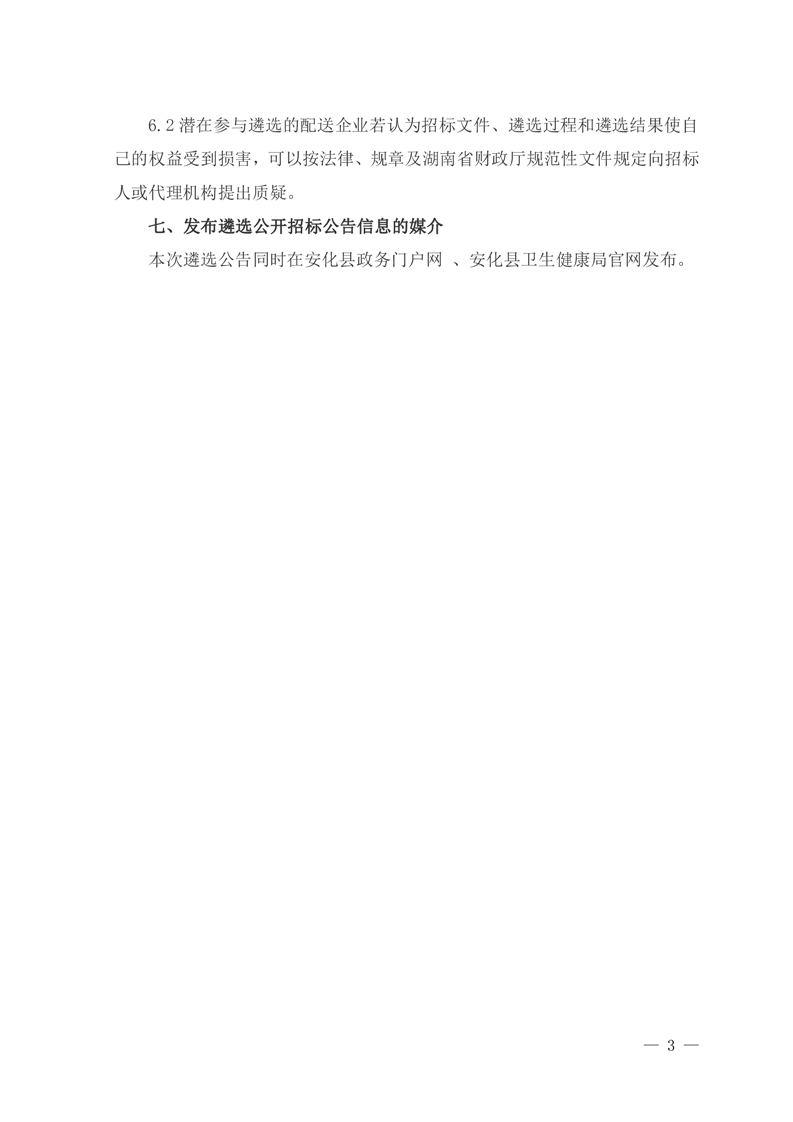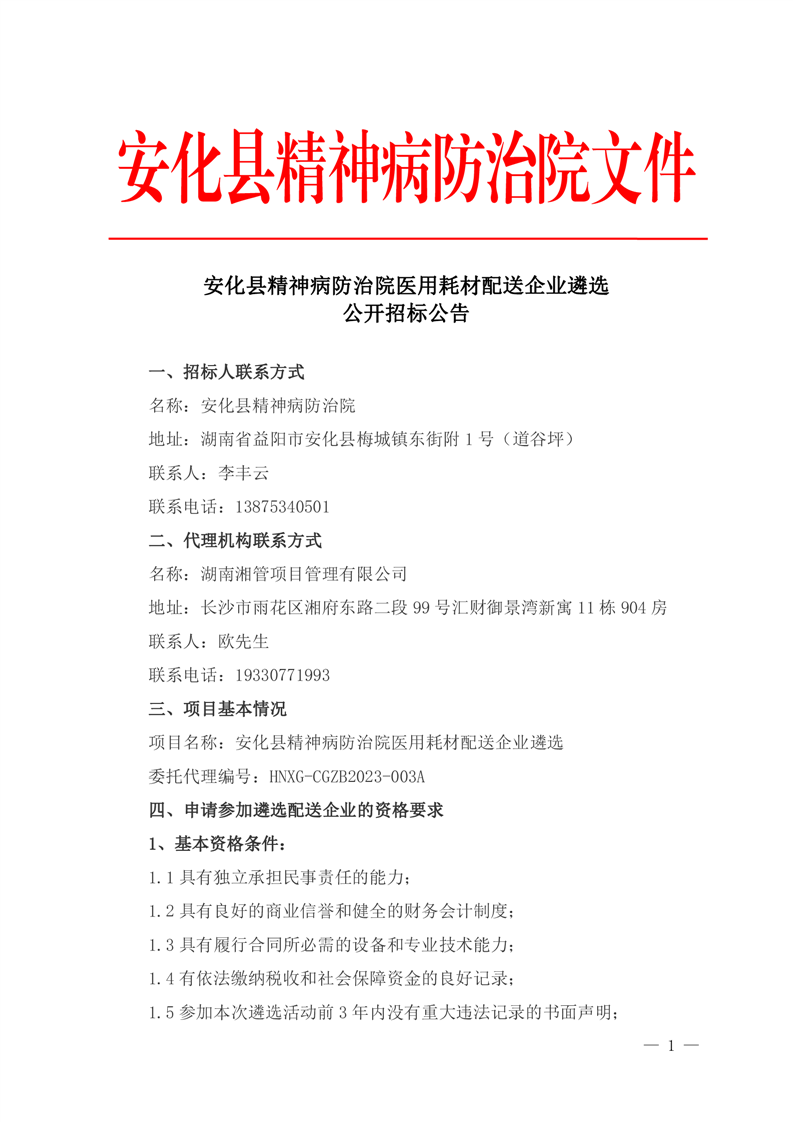 安化县精神病防治院医用耗材配送企业遴选公开招标公告