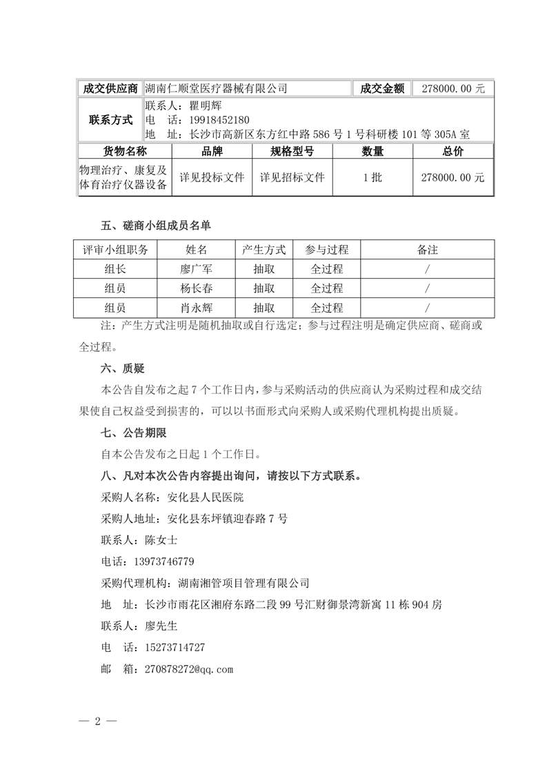 安化县人民医院臭氧水疗仪采购与安装项目成交结果公告