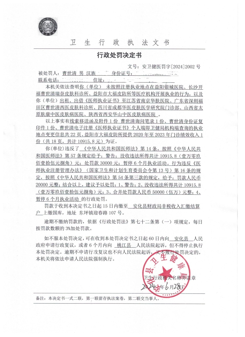 行政处罚决定书(曹世清)