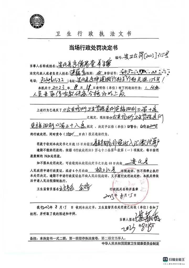 当场行政处罚决定书(安化县京德易堂养生馆)