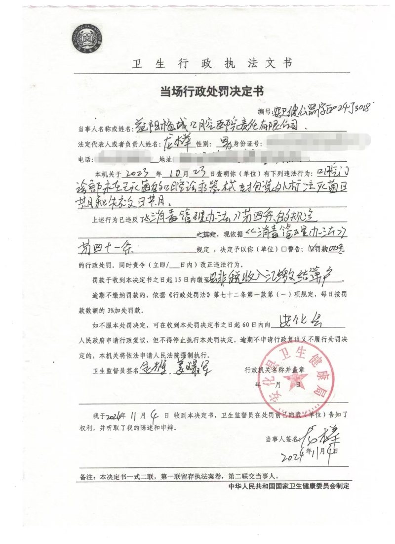 当场行政处罚决定书(益阳梅城口腔医院有限责任公司)