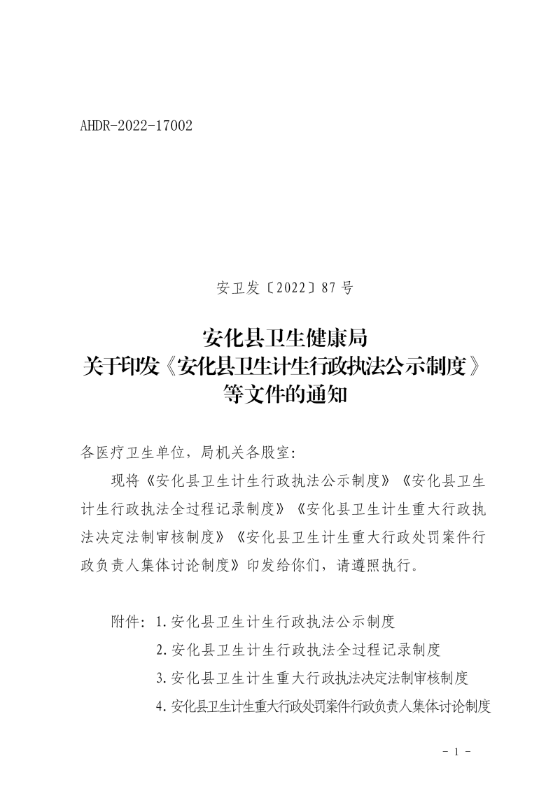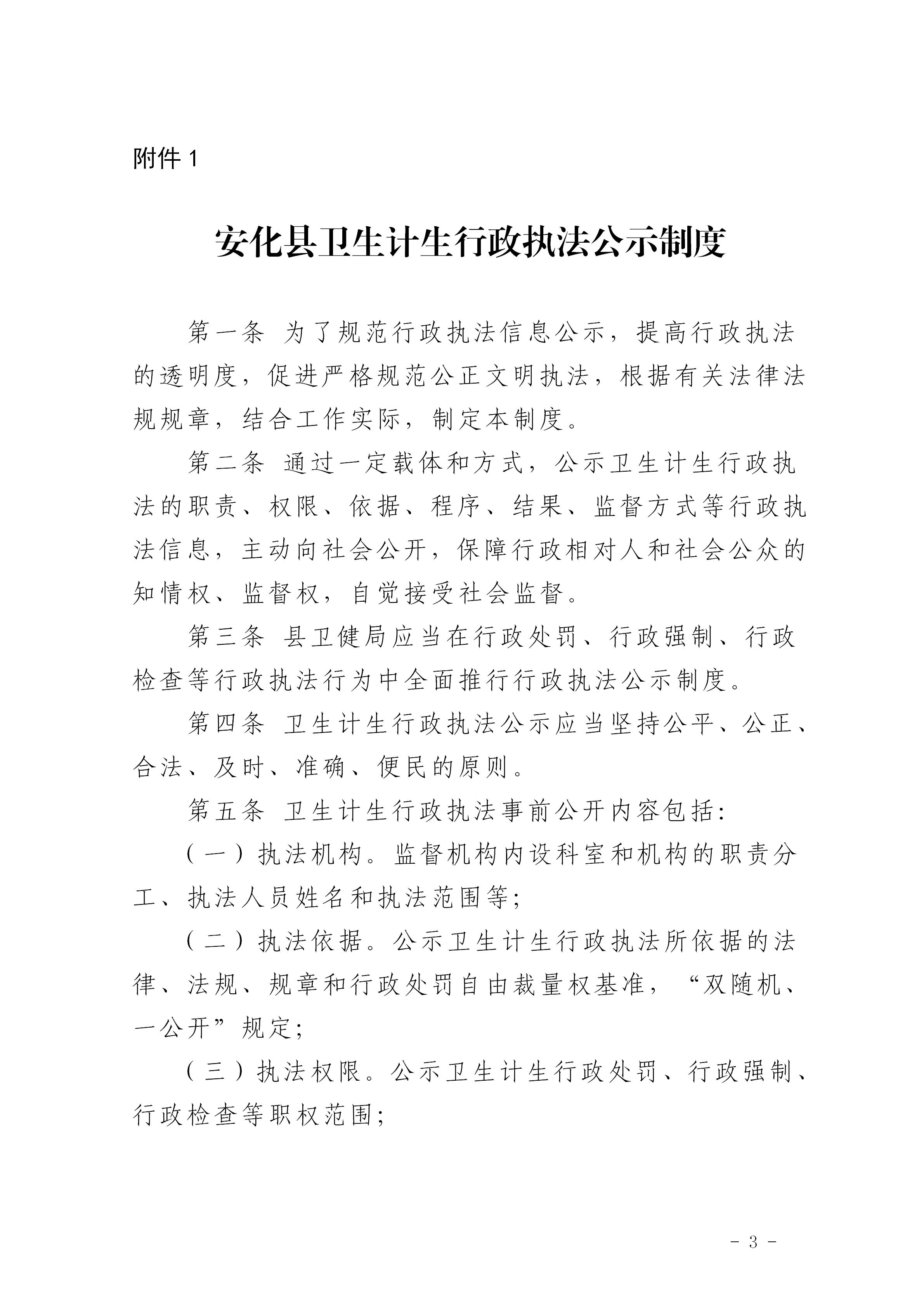关于印发《安化县卫生计生行政执法公示制度》等文件的通知