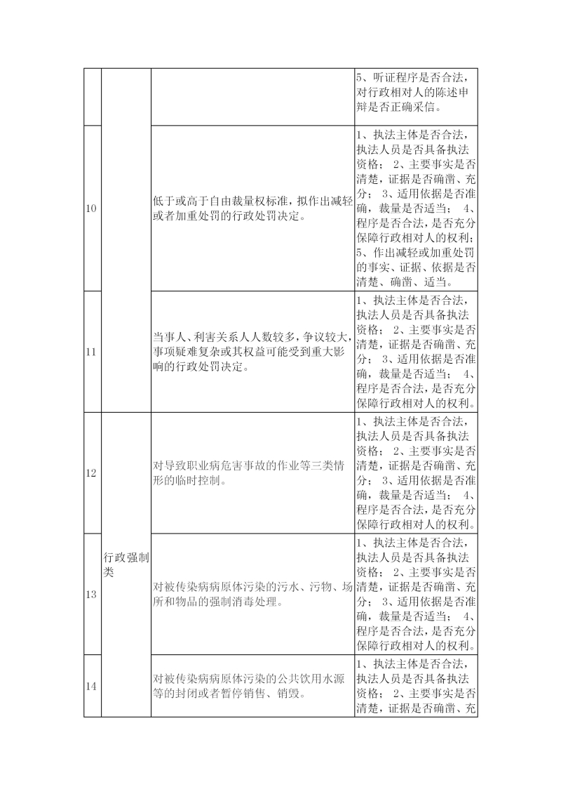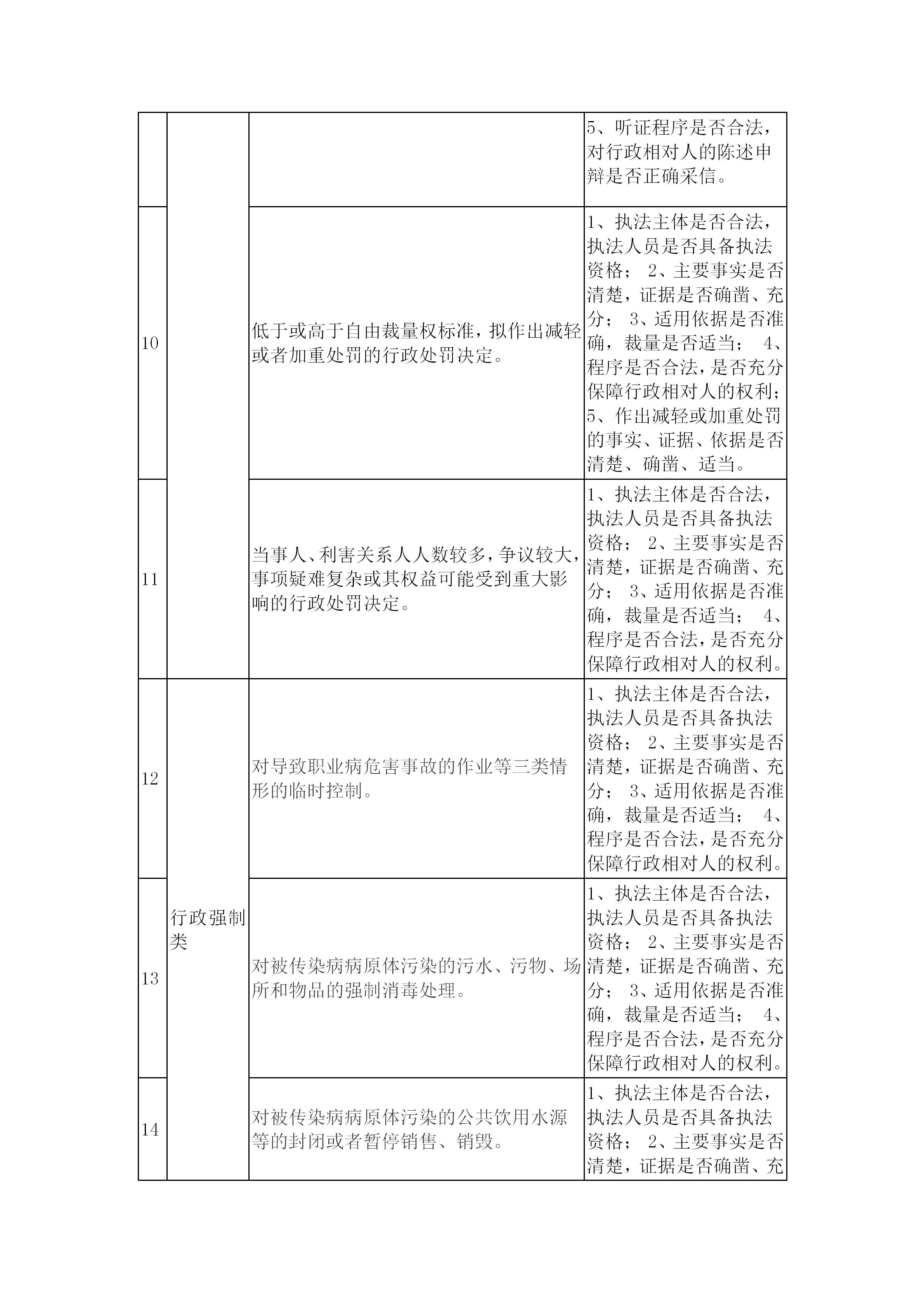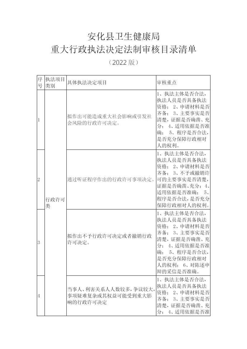 安化县卫生健康局重大行政执法决定法制审核目录清单