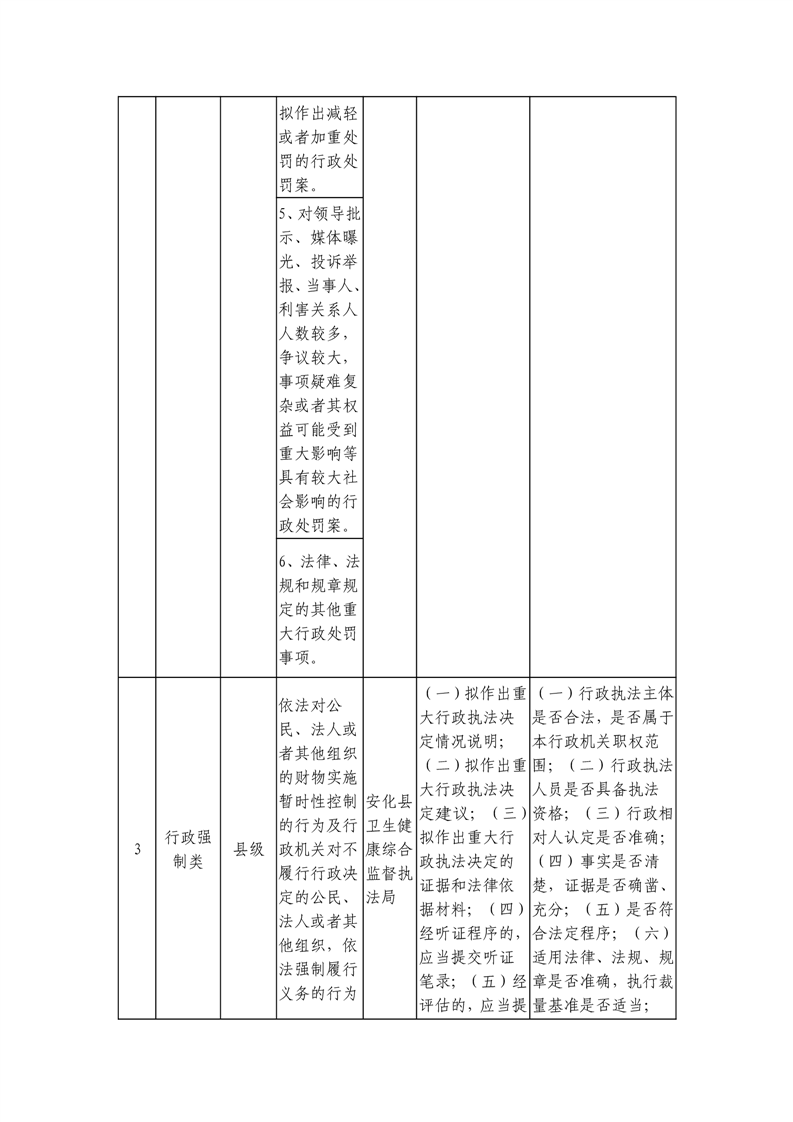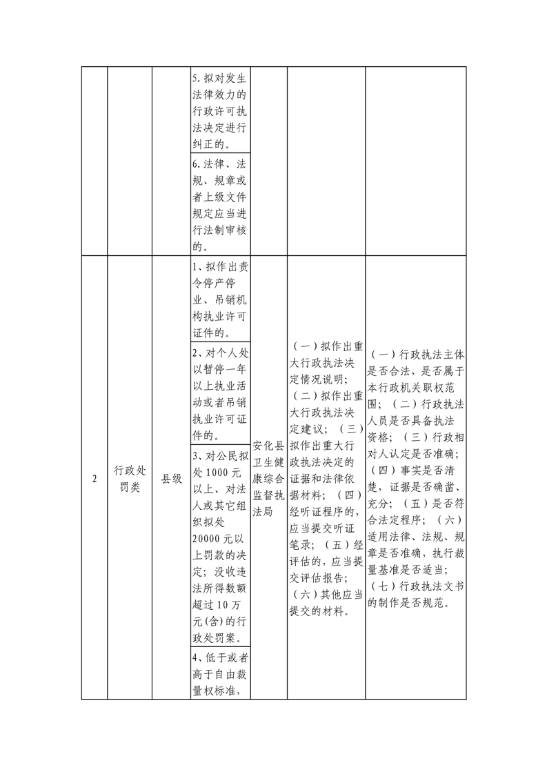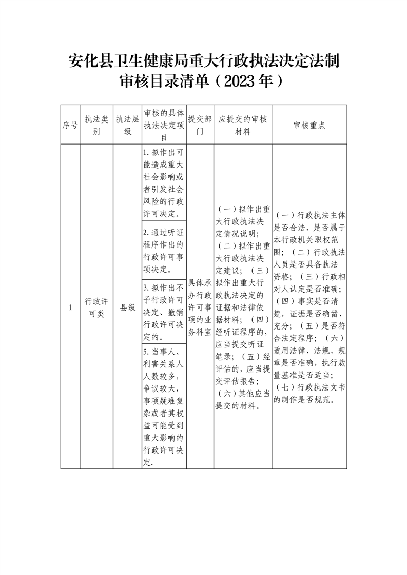 安化县卫生健康局重大行政执法决定法制审核目录清单(2023年)