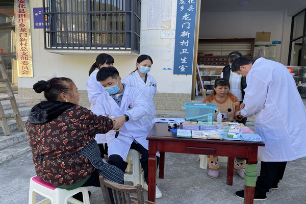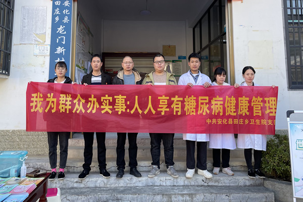 11月14日是第15个“联合国糖尿病日”,当日上午,田庄乡卫生院党支部以及公卫办工作人员在龙门新村开展义诊活动。 义诊现场,田庄乡卫生院全体党员及医护人员在现场为过往居民免费测量血糖、血压,发放健康宣教资料。居民纷纷驻足咨询糖尿病的预防与诊治,以及如何吃、怎么吃、吃什么等膳食健康知识。
