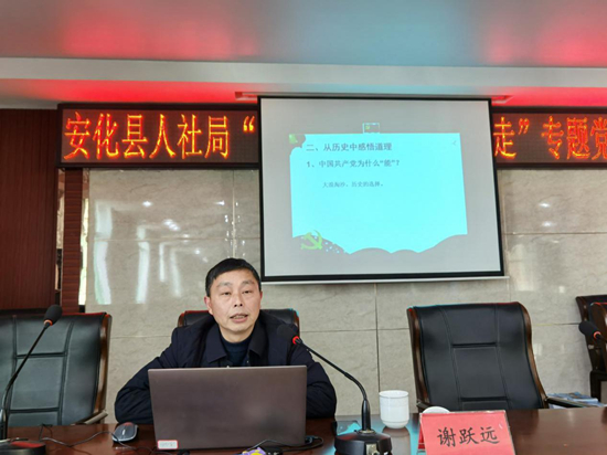 为深入学习习近平总书记在党史学习教育动员大会上的重要讲话精神,调动党员干部参与党史学习教育的热情,3月22日下午,县人社局召开党史学习教育动员大会暨三月份主题党日活动,邀请县委党校三级调研员谢跃远为全体干职工讲述党的奋斗历程。