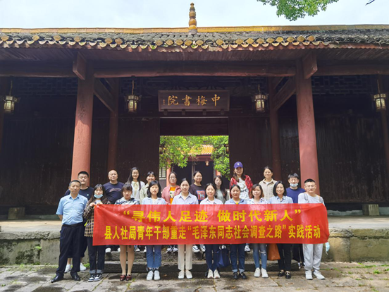 为纪念“五四”青年节,庆祝中国共青团成立100周年,切实发挥青年干部新时代主力军作用,县人社局以党建带团建,于近日组织全局青年干部探寻伟人足迹,重走毛泽东同志社会调查之路。