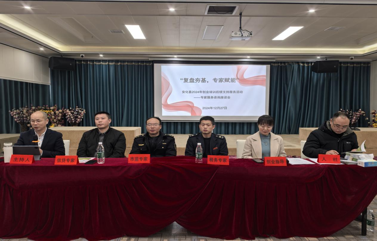 “复盘夯基,专家赋能” ——安化县2024年创业培训后续支持服务活动 务实创业基础,赋能未来之路。12月27日,安化县人力资源和社会保障局在大福镇举办了“复盘夯基,专家赋能”创业培训后续服务活动,共50名创业培训班学员参与活动。