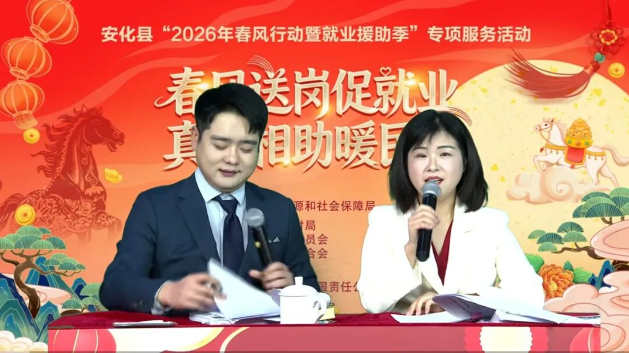 安化融媒2月25日讯(全媒体记者 王子涵)2月25日上午,安化县人社局2026年春风行动暨就业援助季网络直播招聘会启动。