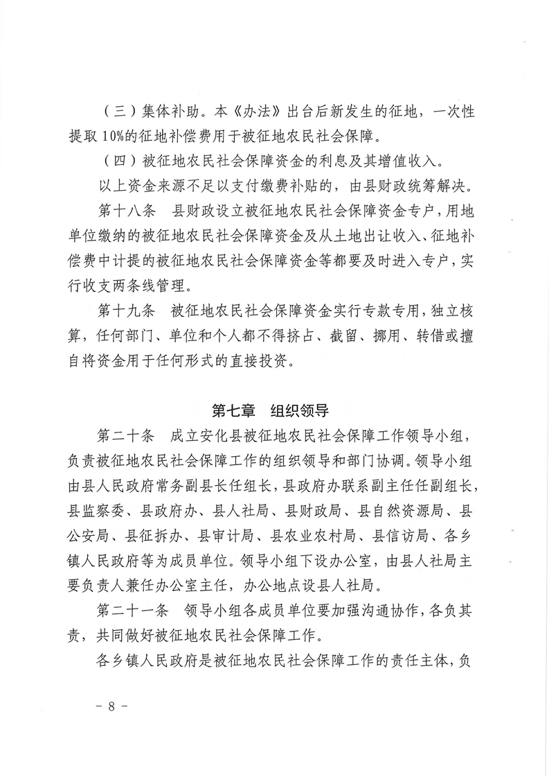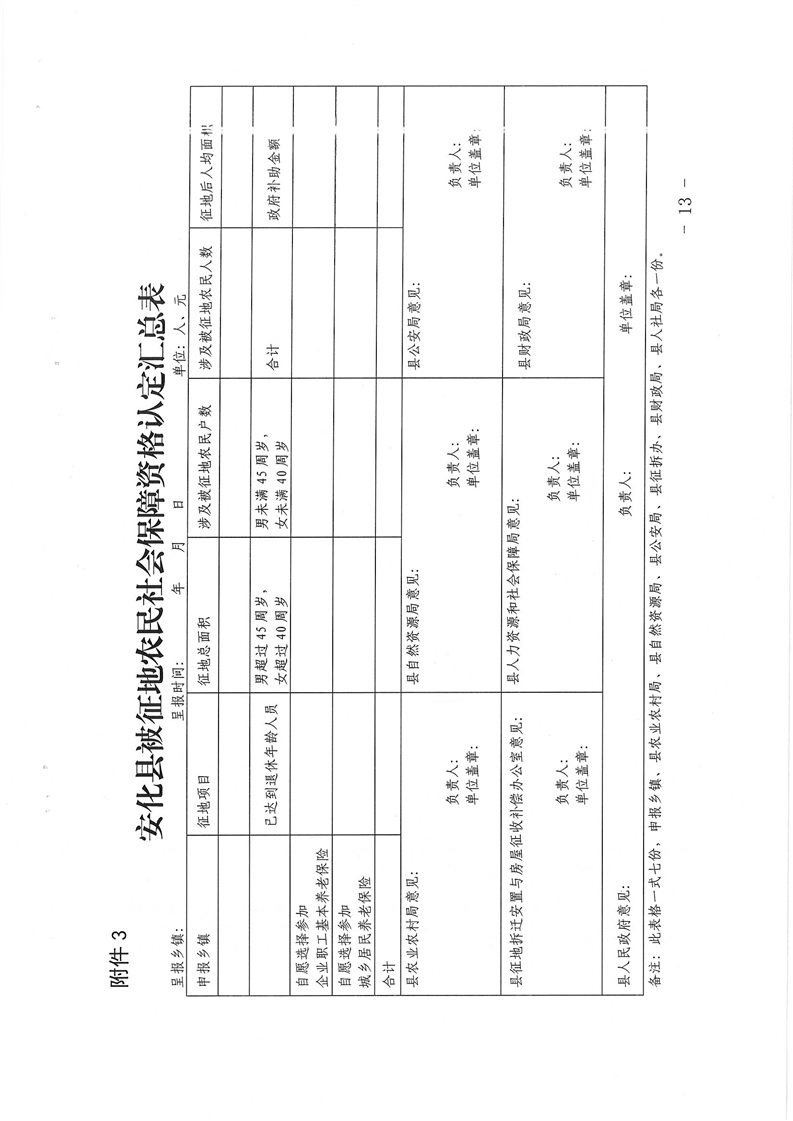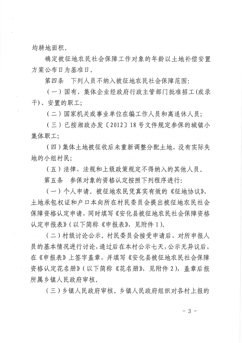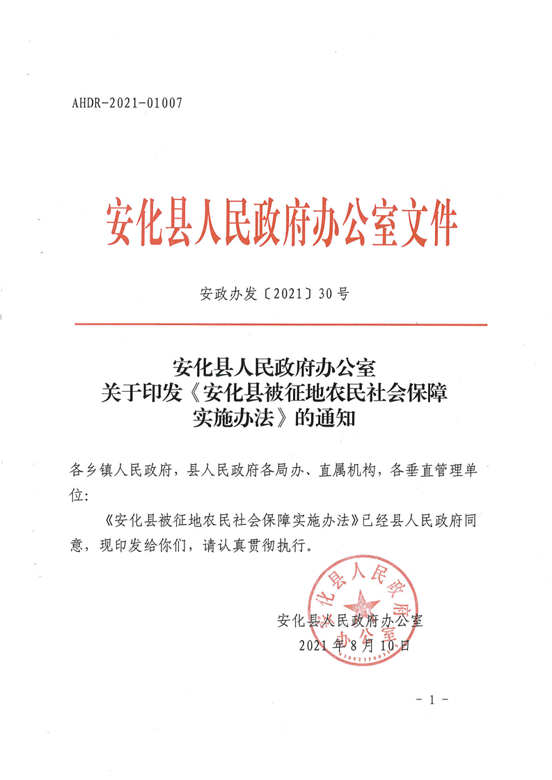 安化县人民政府办公室关于印发《安化县被征地农民社会保障实施办法》的通知