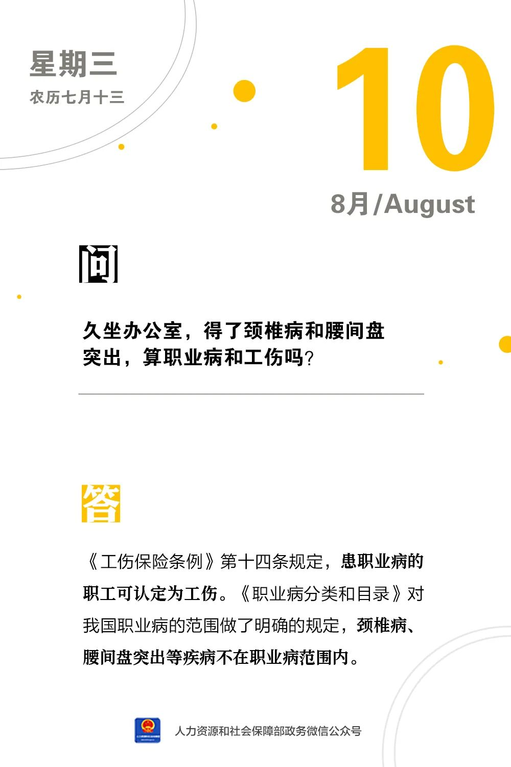 【人社周课】久坐办公室,得了颈椎病和腰间盘突出,算职业病和工伤吗?