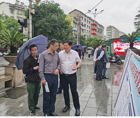 为全面推广《纪检监察机关处理检举控告工作规则》和《信访工作条例》,引导人民群众依法理性向纪检监察机关反映问题,今年5月,安化县纪委监委结合《信访工作条例》宣传月活动,联合乡镇纪委、安化经开区纪工委同步“摆摊设点”开展宣传活动,在来访接待所、集镇、人流聚集地等设立“摊位”,设置醒目的宣传展板,派专人驻点为上前询问的群众答疑解惑,详细了解群众急难愁盼问题,认真倾听群众意见建议,其他工作人员从点到面向周边群众、甚至上门入户发放相关宣传手册。
