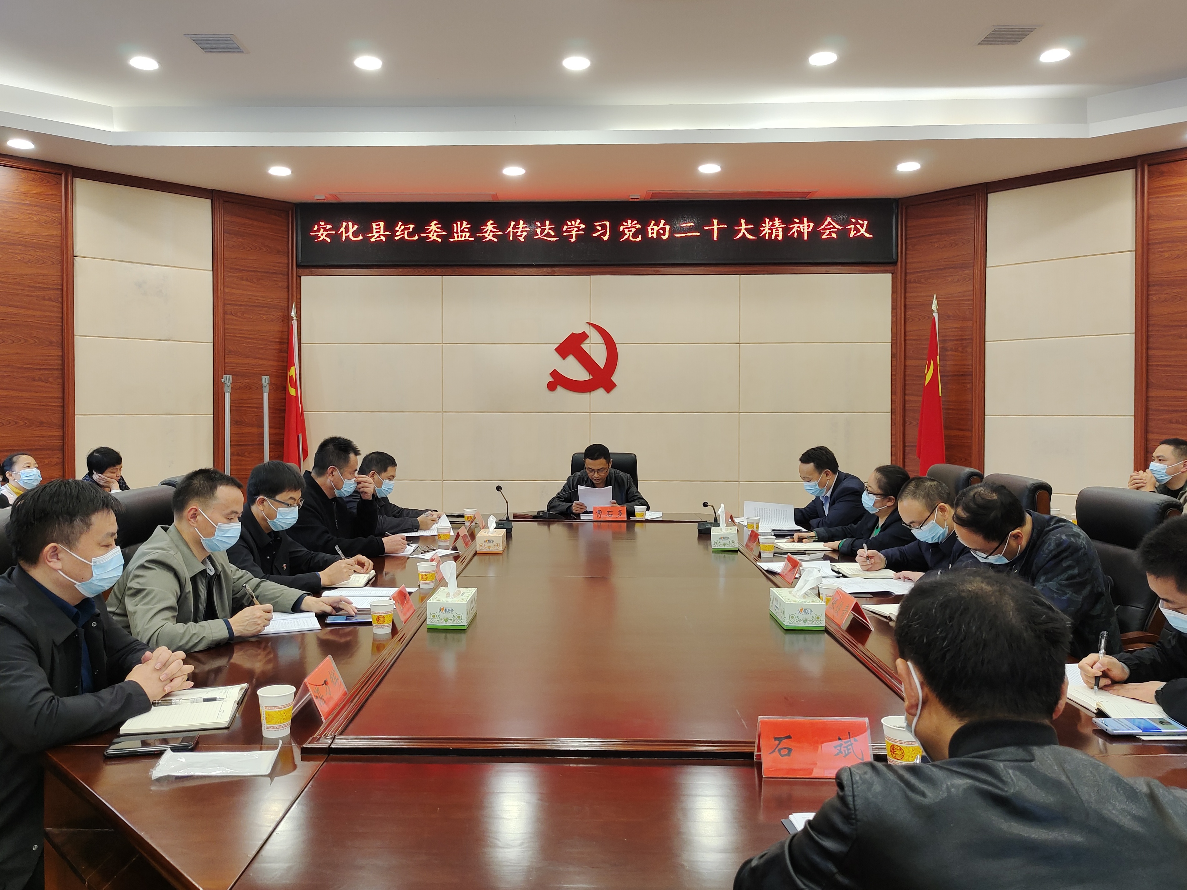 10月28日下午,县纪委监委机关传达学习党的二十大精神会议召开,县委常委、县纪委书记、县监委主任曹石多主持会议。