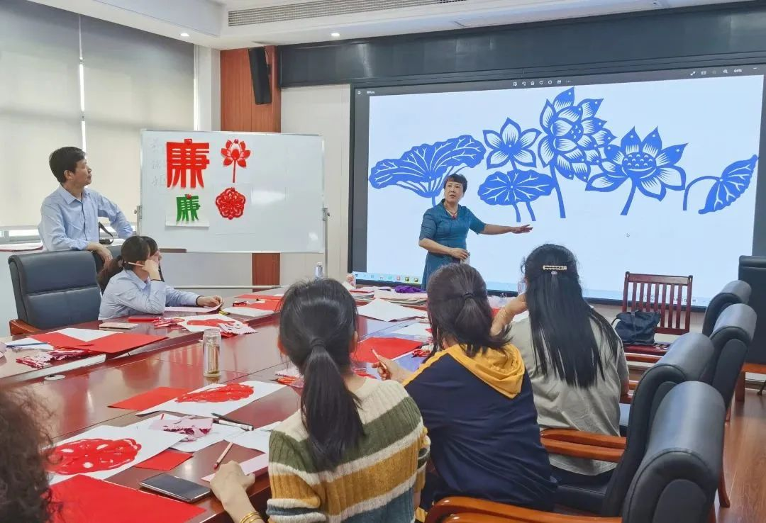 活动邀请国家级非遗梅山剪纸传承人向亮晶老师作专题指导,她从梅山剪纸的历史渊源和教育意义,剪纸的基本概念、方法和技巧进行了生动有趣地讲解,并现场演示剪纸方法。