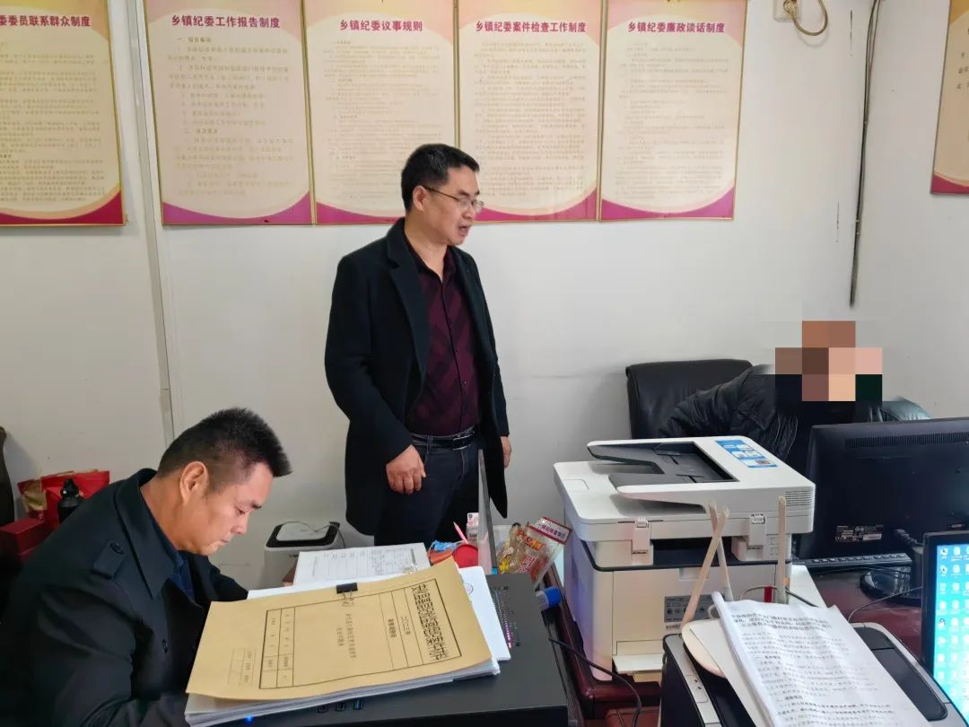▲12月7日,渠江镇纪委联合镇乡村振兴办工作人员对城华村乡村振兴台账资料进行专项检查,助推乡村振兴提质增效。(图/文 谌东)