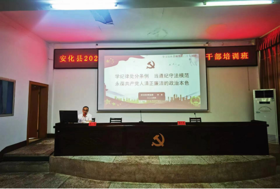 会议邀请了安化县纪委常委、县监委委员李军进行专题辅导。李军结合近年来从中央到地方查办的违纪违法案件,特别是结合查处的年轻干部典型案例进行深入剖析,对新修订的《中国共产党纪律处分条例》进行深入浅出的解读,告诫年轻党员干部要自觉抵制不正之风,培养积极健康的生活习惯,远离不良嗜好,净化自己的朋友圈。要求年轻干部要学思践悟,始终用党规党纪规范自己的言行举止,做到不碰底线,不越红线。