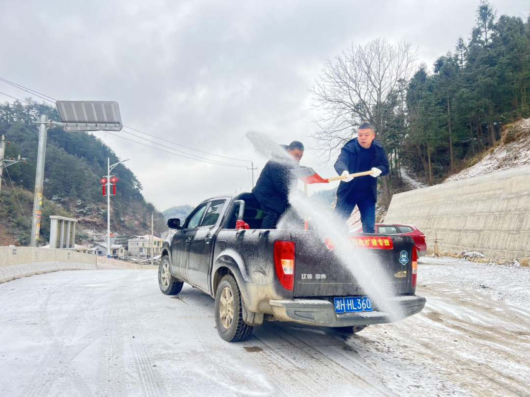 ▲1月20日,高明乡纪检监察干部既督又战,一方面,聚焦职能部门应急预案执行、物资调度保障及干部履职尽责等情况开展“嵌入式”监督,推动责任压紧压实;另一方面,冲锋在前开展除冰作业,有效消除通行隐患。(图/文 丁谢勇)