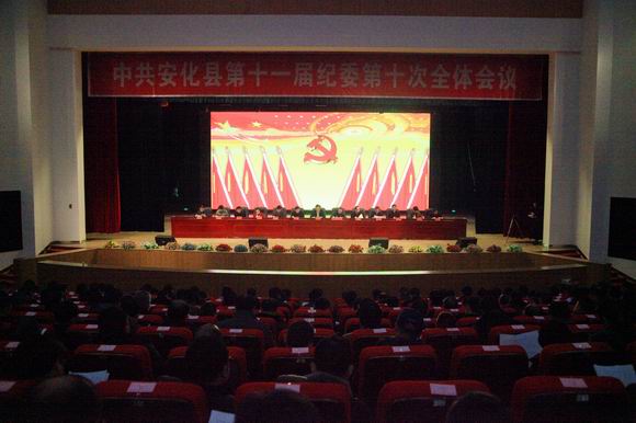 ,中共安化县第十一届纪委第十次全会在安化大剧院召开。县委书记杨光鑫出席会议并作重要讲话,县委常委、县纪委书记邓友良向全会作工作报告。会议由县委副书记王新宇主持,县委常委、县委办主任邹雄彬宣读《关于表彰2015年度党风廉政建设先进单位的通报》。