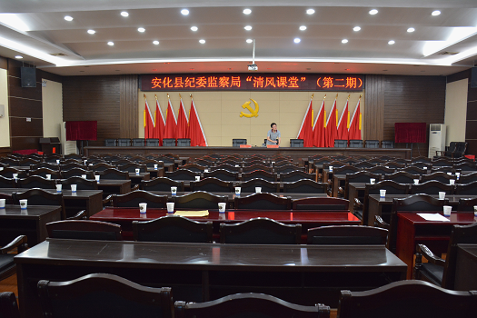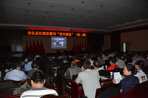 “请大家靠前就座,将手机调成静音状态,认真观看警示教育片……”6月30日上午9:30,在安化县纪委组织的清风课堂第二期开课现场,工作人员正在有序组织开班事宜。按照议程,今天的清风课堂将组织全县纪检干部观看警示教育片《迷失》,然后邀请市纪委领导进行《中国共产党纪律检查机关监督执纪工作规则》的专题培训。