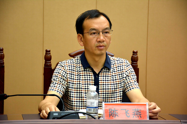 图为县委常委、县委组织部部长陈飞燕宣读通知