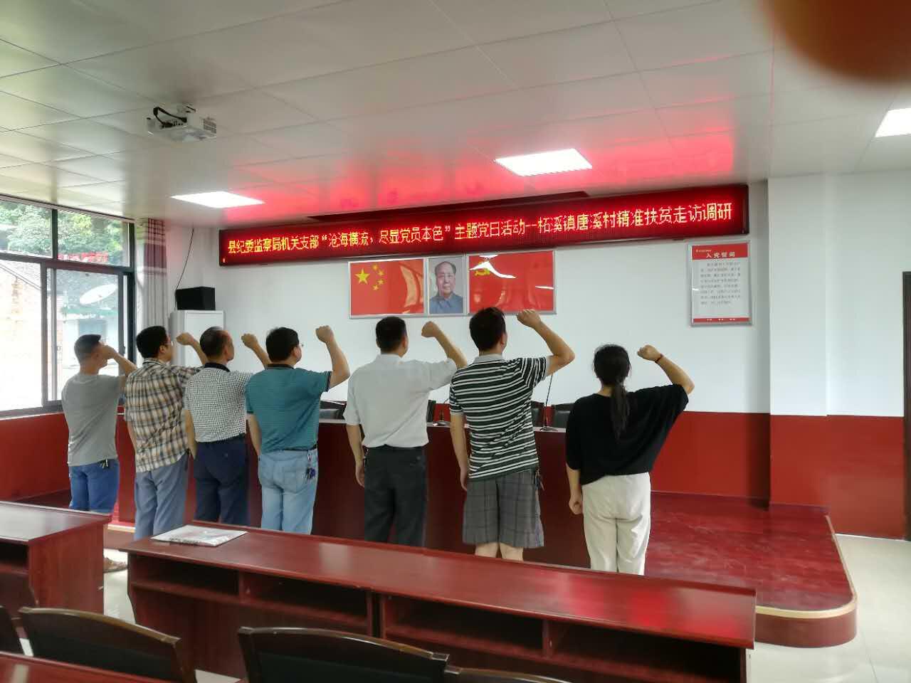 “我志愿加入中国共产党,拥护党的纲领,遵守党的章程,履行党员义务,执行党的决定……”在唐溪村,委局机关支部党员对着党旗重温入党誓词,通过宣誓,对照入党誓词找标准、找差距,通过重温入党誓词,加强对党员的使命教育、责任教育、宗旨教育和权力观、义务观教育。