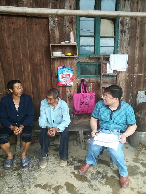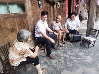 (安化县纪委常务副书记、县监察局局长殷增业在了解老党员生活情况)
