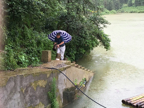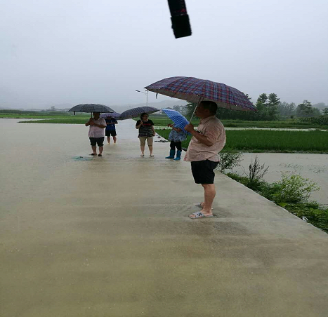 安化县残联纪检组长莫晓宏一直坚守在长塘镇田文水库查看险情。