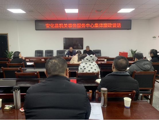 为落实全面从严治党的决策部署与“两个责任”,提高党员干部廉洁自律意识,推动县机关事务工作高质量发展。1月12日,县机关事务服务中心党组书记简文艺对中心全体干部开展集体廉政谈话。