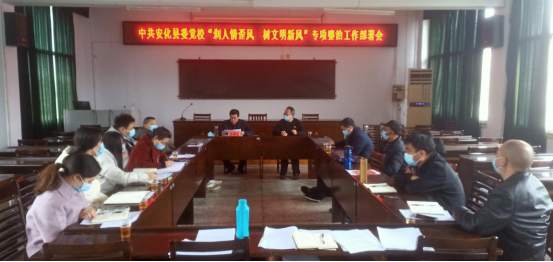 为贯彻落实《关于印发〈安化县“刹人情歪风 树文明新风”专项整治工作方案〉的通知》文件精神,3月22日,县委党校召开“刹人情歪风 树文明新风”专项整治行动部署会议,县委党校常务副校长负责主持,全校干职工参加。